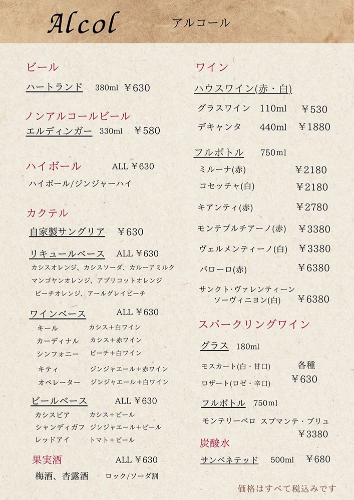 17:00以降、中学生以上のお客様はお一人様ワンドリンク以上のご注文をお願いします。